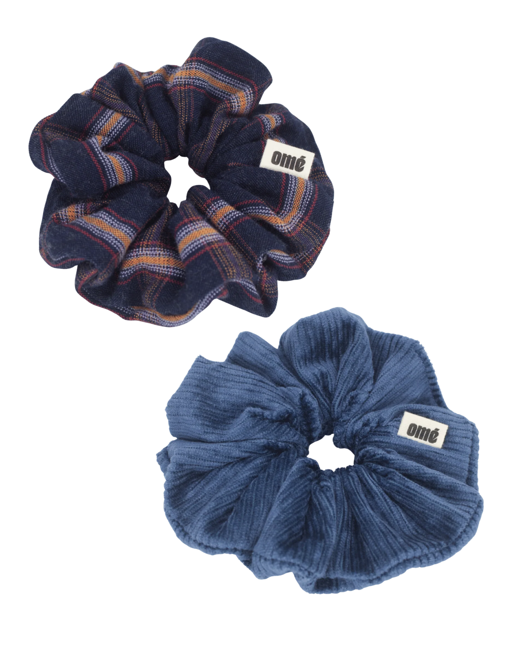 Le chouchou bleu en velours et le topaze sont confectionné en Suisse à partir d’un tissu de fin de série d’une maison de haute couture.